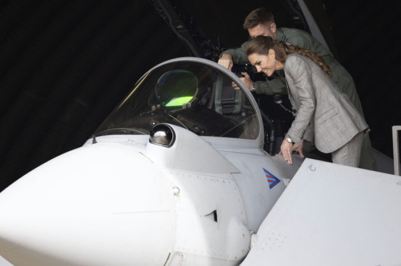 Într-un clip distribuit de revista Hello!, Kate poate fi văzută coborând cu grație pe scara unei aeronavei Typhoon, purtând pantofi cu tocuri subțiri și foarte înalte, arată revista People.