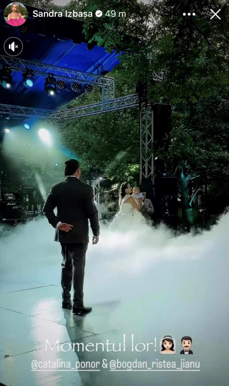 Cătălina Ponor a strălucit. Îmbrăcată într-o rochie de mireasă stil prințesă, a fost toată noaptea cu zâmbetul pe buze, a dansat și a fost cu adevărat sufletul petrecerii. Soțul ei, Bogdan, a ales un costum gri închis, cu vestă, și și-a purtat părul lung prins. Surpriza din imaginile postate pe rețelele sociale de invitați l-au arătat și pe fiul lor de șase luni, care a fost ținut în brațe de părinți la dansul mirilor.