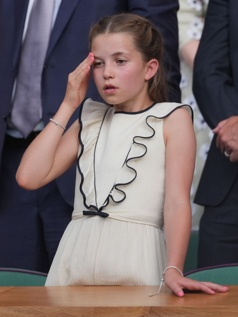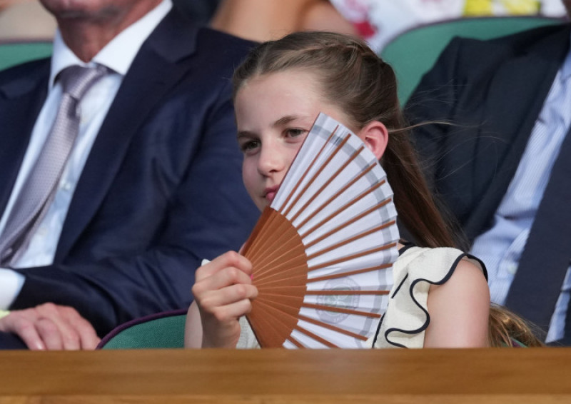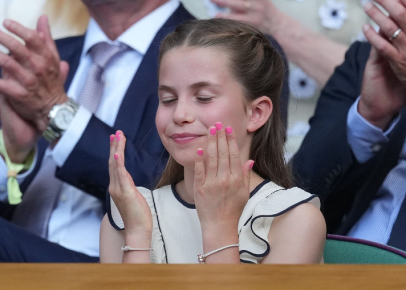Alături de părinții ei și de fratele mai mare, Prințul George, Charlotte a luat loc în loja regală a terenului central de la All England Club, unde a urmărit confruntarea dintre Carlos Alcaraz și Jannik Sinner. În ciuda temperaturilor ridicate, care păreau să o afecteze ușor, Charlotte a rămas calmă și elegantă, folosindu-se de un evantai, prilej cu care publicul a putut observa unghiile sale roz, vizibile și în momentele în care își acoperea gura cu mâna.