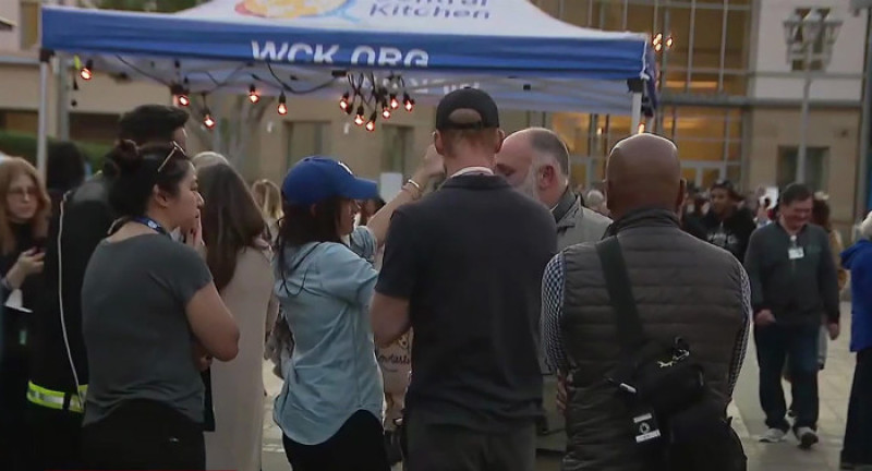 Cuplul a fost, de asemenea, surprins îmbrățișându-l pe Jose Andres, fondatorul World Central Kitchen, care distribuie mese calde gratuite publicului și echipelor de intervenție.