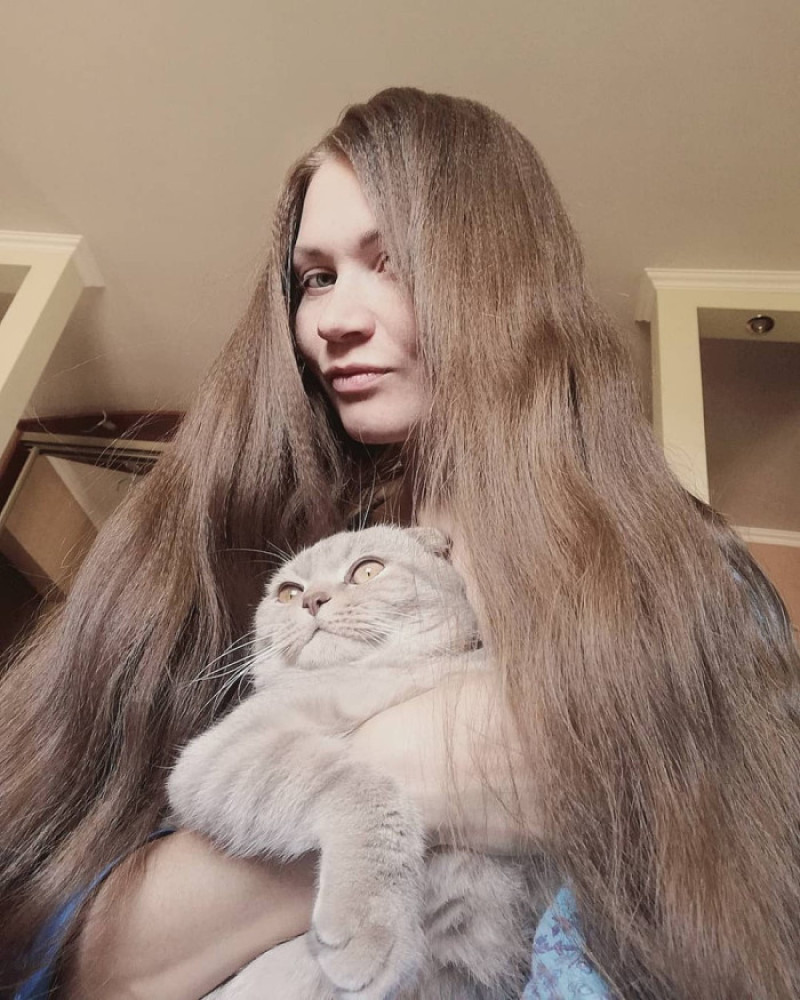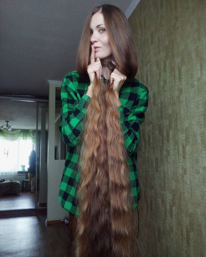 Daira Gubanova are acum 34 de ani și a ales să nu-și mai tundă părul în urmă cu 17 ani, după ce a făcut un pariu cu un prieten. Acum, părul ei măsoară aproape doi metri lungime și îi ajunge până în pământ.