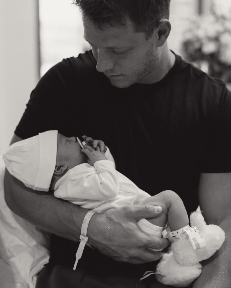 Anunțul a fost făcut pe Instagram, unde Olivia a postat o serie de imagini alb-negru din spital, surprinzând clipele emoționante din primele ore de viață ale micuței. Într-una dintre fotografii, fetița apare întinsă pe o păturică pufoasă, iar în alta, Olivia, Christian și Colette sunt surprinși într-o ipostază de familie, micuța acoperindu-și fața cu mânuță.