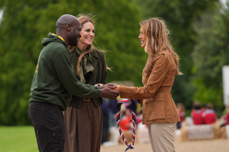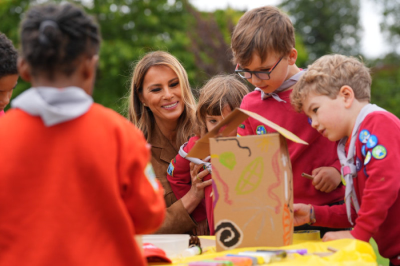 Prima doamnă a SUA, Melania Trump, și prinţesa de Wales au mers miercuri la o plimbare prin grădinile Frogmore, unde au cunoscut un grup de copii participanţi la programul educativ de stimulare a abilităţilor, "Scouts Squirrels" (Veveriţele Cercetaşe).
