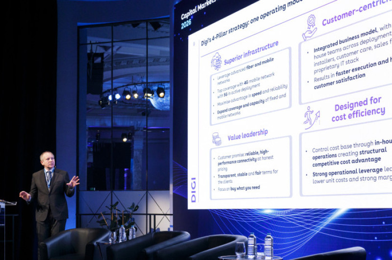 Digi Communications N.V., jucător important în sectorul telecomunicațiilor europene, a organizat joi, 5 martie 2026, la Madrid, DIGI Capital Markets Day 2026. Întâlnirea a avut loc la Centrul El Círculo de Bellas Artes și a oferit investitorilor, experților și analiștilor pieței de capital o perspectivă amplă asupra dinamicii operațiunilor, priorităților strategice pentru următorii ani și poziționării Grupului pe toate piețele în care își desfășoară activitatea.