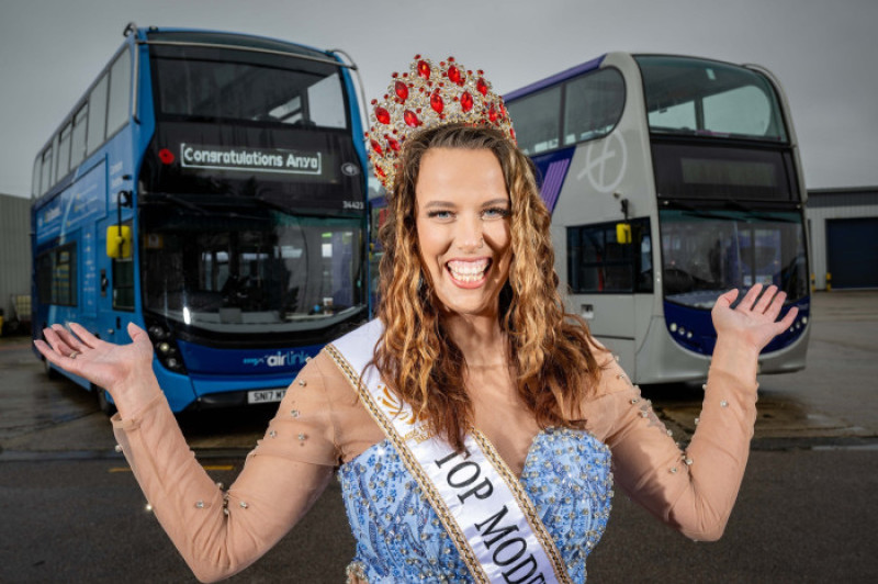 O tânără de 24 de ani a făcut furori pe rețelele sociale după ce a vorbit despre viața ei. În timpul liber, Anya Hudson este „Miss Smile” și „Miss Top Model Universal”, dar în viața de zi cu zi ea conduce autobuze pe ruta Colchester – Stansted Airport.