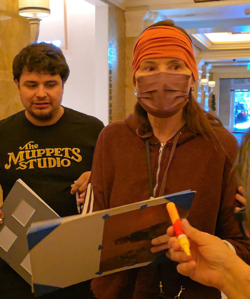 Cele trei momente, de altfel tot mai rare pentru actrița de 68 de ani, au fost precedate de poze de paparazzi în care puțini ar fi recunoscut-o. Cu o zi înainte de evenimente, Geena Davis a ajuns la hotelul ei din Las Vegas, dorind să treacă incognito. În blugi largi, un hanorac maro, cu mască pe față și bandană pe cap, nemachiată și necoafată, vedeta a avut doar ochii la vedere. Cu toate acestea, fanii fideli care o așteptau în holul hotelului au recunoscut-o, așa că nu a scăpat fără să dea câteva autografe.