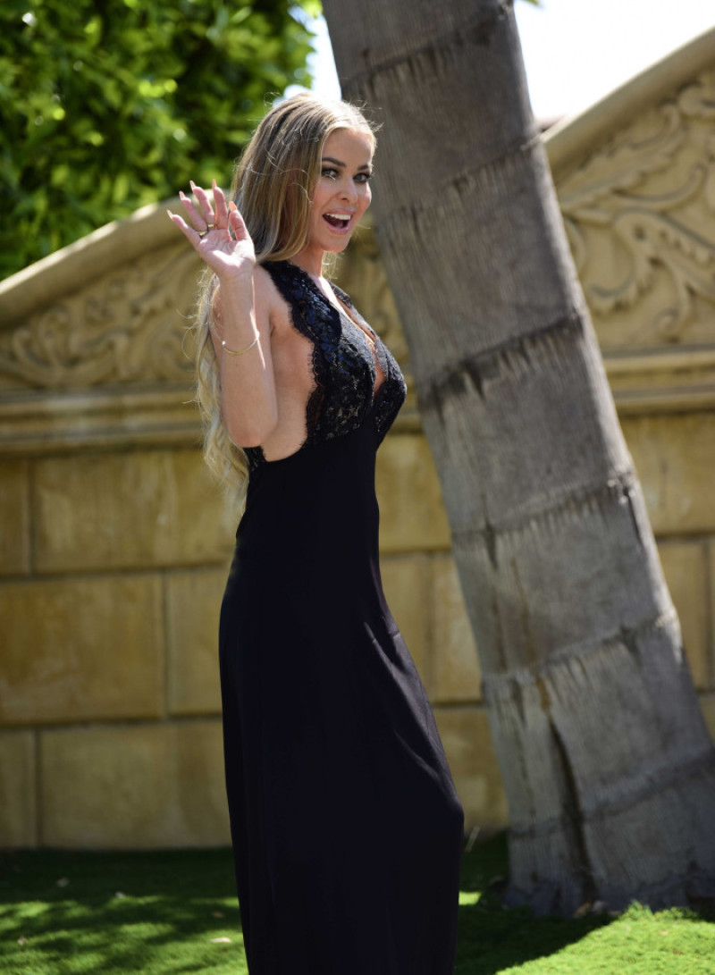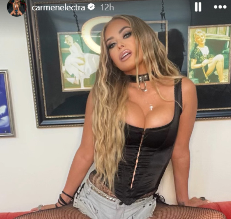 Carmen Electra, fostul star "Baywatch", acum în vârstă de 53 de ani, a postat pe Instagram imagini în care purta un corset negru cu șireturi, blugi scurți, dresuri plasă și cizme cu toc cui.