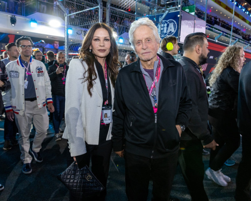 Actrița premiată cu Oscar a atras toate privirile într-o ținută șic, în timp ce a participat alături de soțul ei, Michael Douglas, și de fiul lor, Dylan, la Marele Premiu de Formula 1 din Las Vegas.