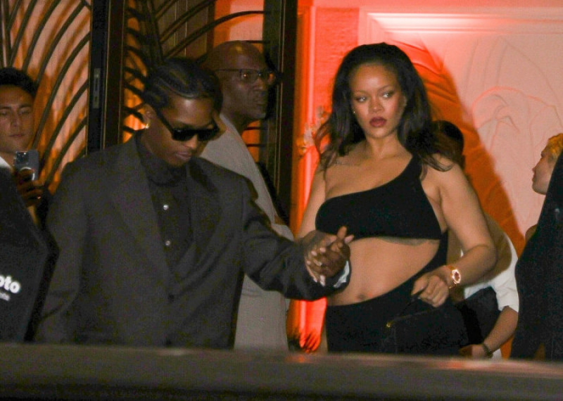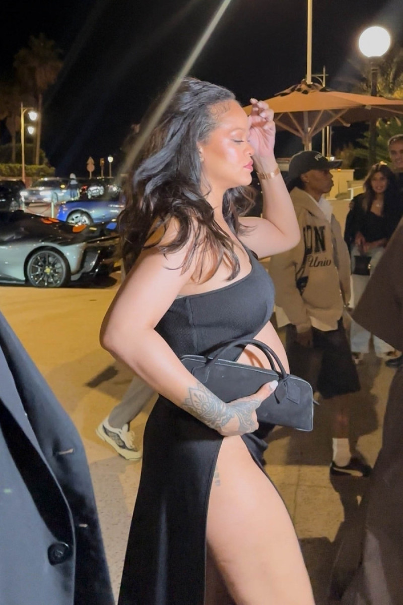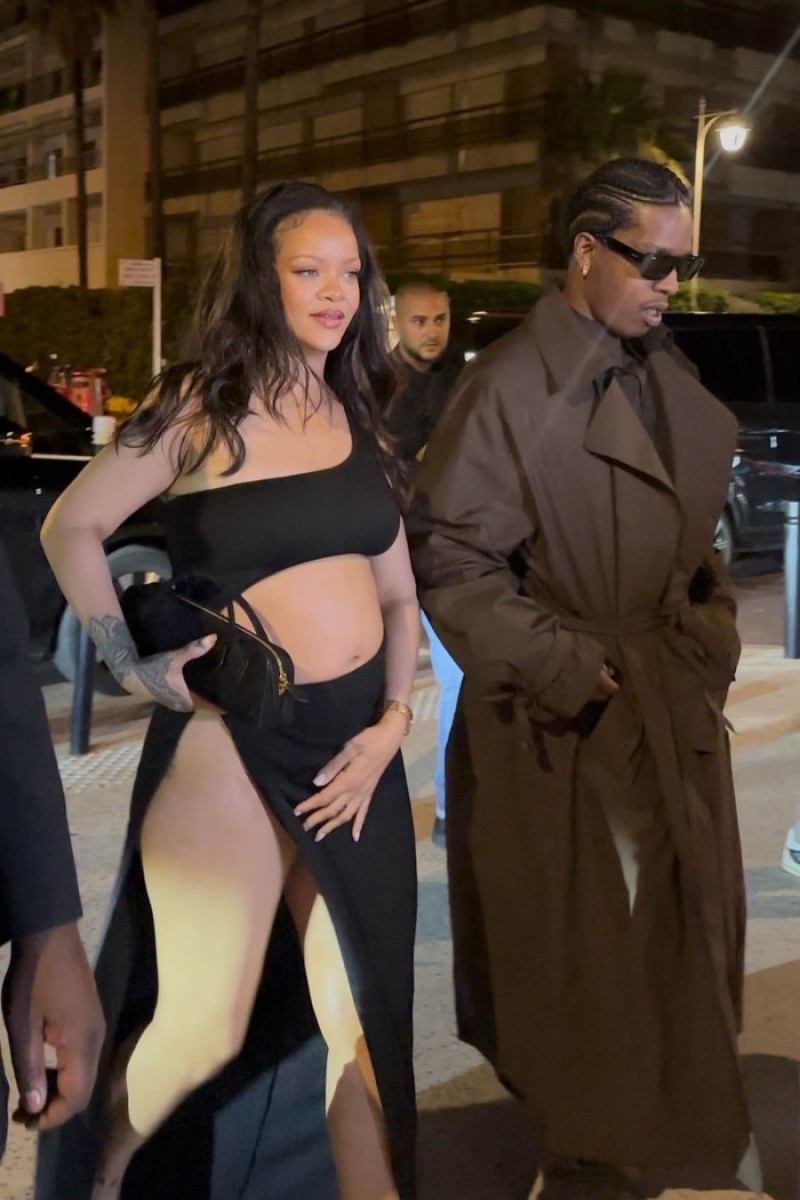 Cei doi, care sunt deja părinții lui RZA (născut în 2022) și Riot (născut în 2023), au participat cu o seară înainte și la Festivalul de Film de la Cannes, unde Rihanna l-a susținut pe partenerul său la premiera filmului "Highest 2 Lowest". Pentru acea ocazie, cântăreața a îmbrăcat o rochie albastră cu decupaje elegante în zona abdomenului și detalii sub formă de funde, care aminteau subtil de personajul pe care îl interpretează în filmul animat "The Smurfs". Accesoriile au fost, ca de obicei, alese cu grijă: cercei cu diamante în formă de fluture și frunză, o poșetă asortată și mai multe inele fine care au completat ținuta.