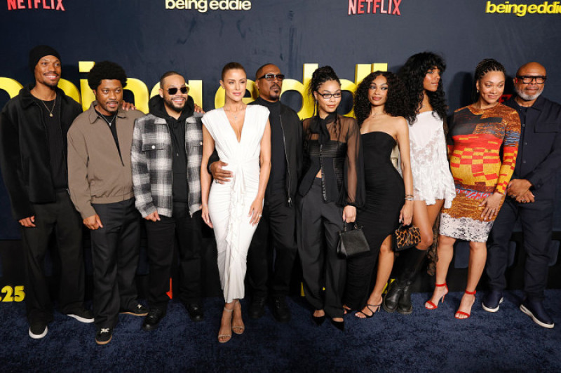 Eddie Murphy și-a făcut apariția pe covorul roșu înconjurat de o mare parte din familia sa. Comediantul în vârstă de 64 de ani a fost însoțit de șapte dintre cei zece copii ai săi la premiera documentarului "Being Eddie". Într-una dintre fotografii, Murphy poate fi văzut în centrul familiei, cu un braț în jurul soției sale, Paige Butcher.