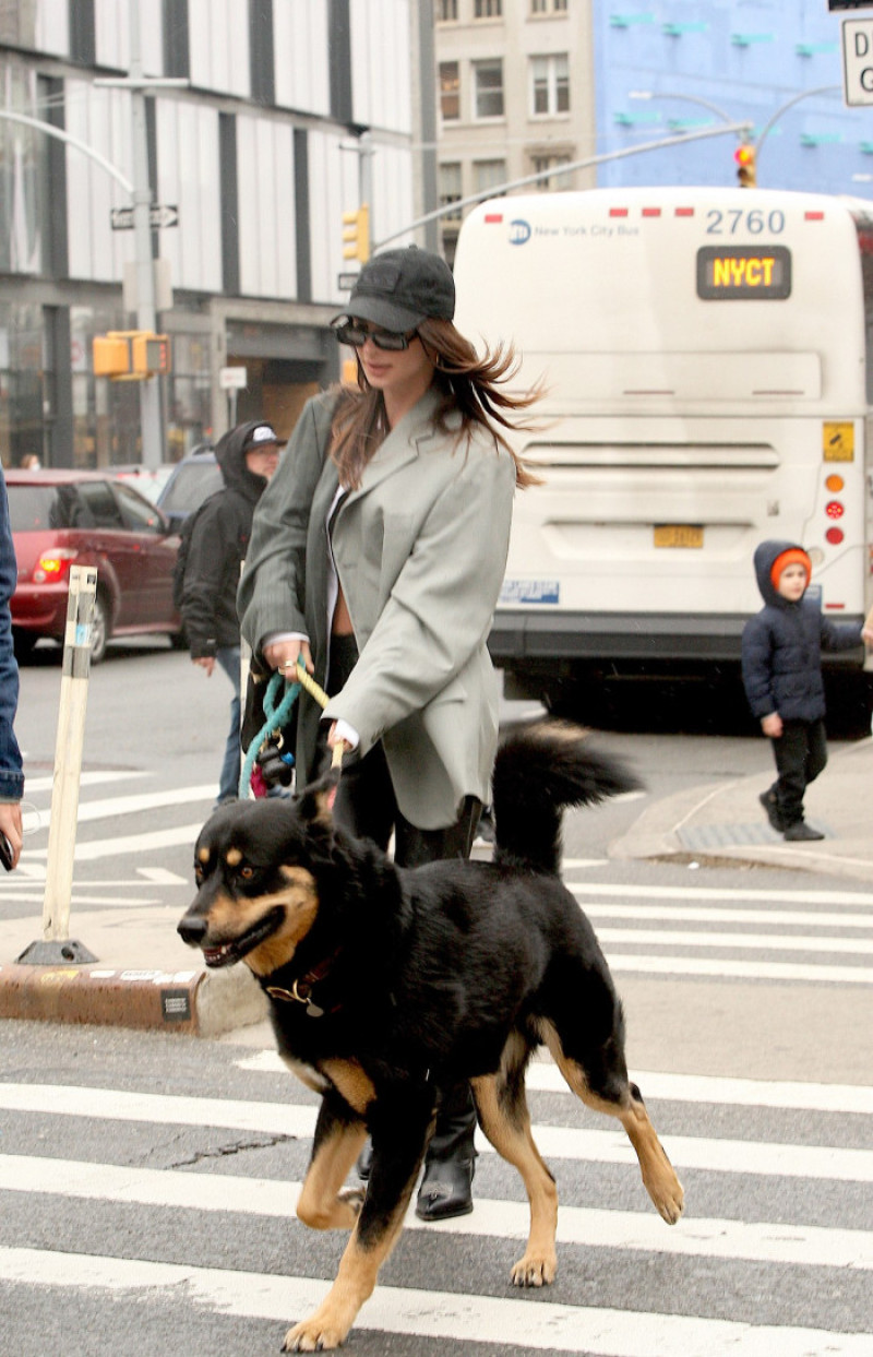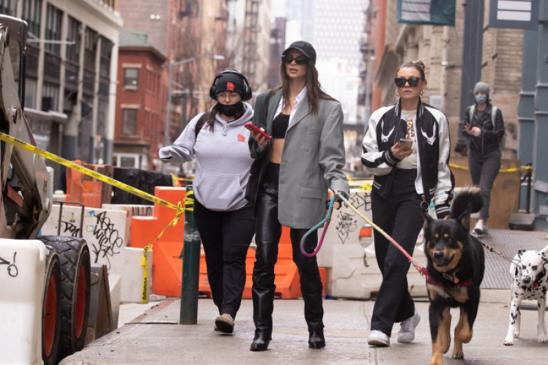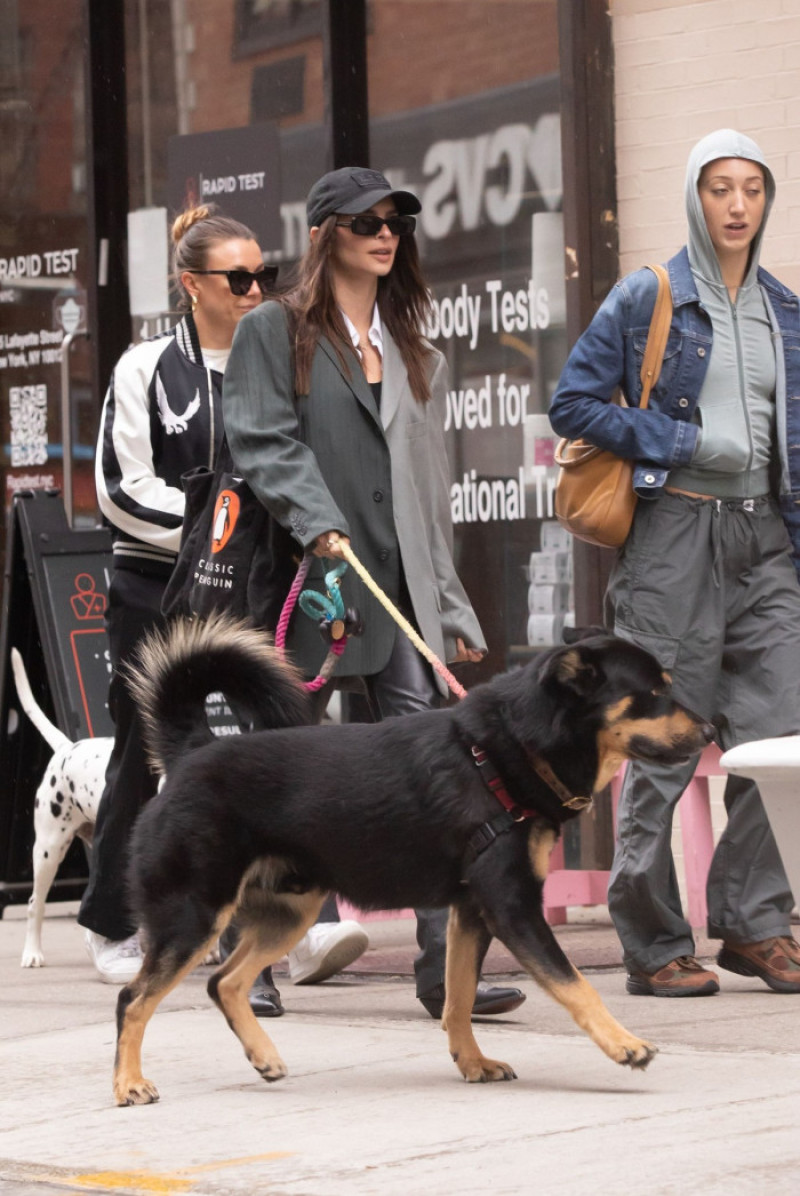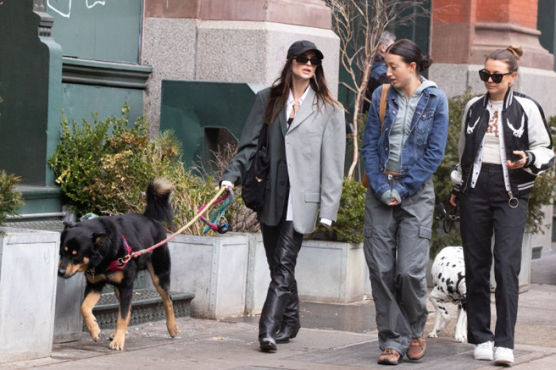Modelul, în vârstă de 30 de ani, și-a arătat abdomenul plat după sarcină, purtând un top scurt și negru, pe care l-a asortat cu o pereche de pantaloni din piele și un blazer supradimensionat gri cu dungi. Ea și-a accesorizat totul cu o șapcă neagră și o pereche de ochelari de soare. Aceasta a ieșit la o plimbare cu patrupedul ei, Colombo, bucurându-se de vremea din New York.