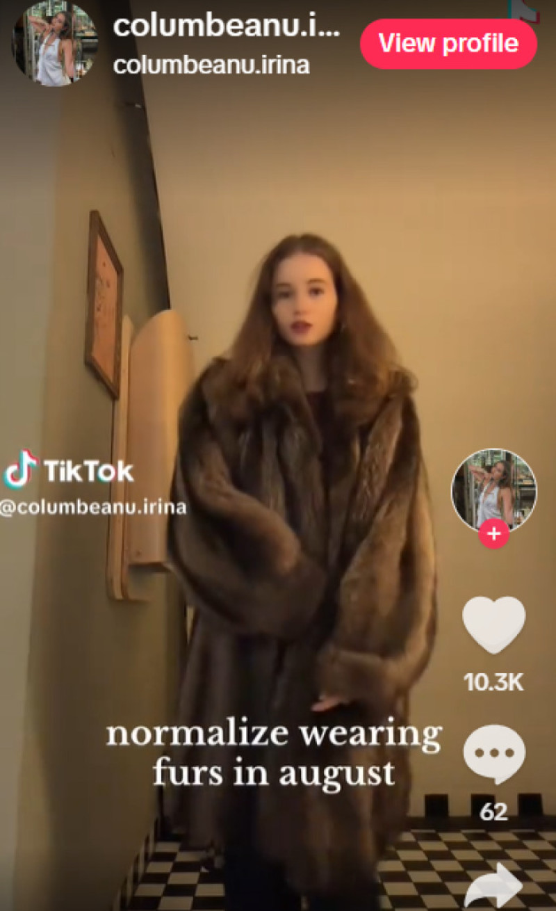 Irina Columbeanu, fiica Monicăi Gabor și a lui Irinel Columbeanu, a atras din nou atenția în mediul online după ce a publicat pe TikTok un videoclip surprinzător din Cluj. Tânăra în vârstă de 18 ani a ales să poarte o haină de blană voluminoasă, deși afară este mijlocul verii, stârnind reacții amuzate din partea urmăritorilor.
