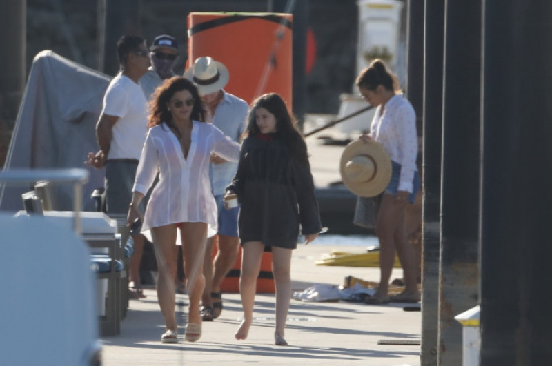 Cei doi au fost surprinși de paparazzi bucurându-se plajă și vreme bună pe un yacht, iar zilele trecute aceștia au fost fotografiați în stațiunea mexicană Cabo. Îmbrăcată în costum de baie, cu o cămașă albă peste, Sanchez și-a etalat silueta impecabilă la 51 de ani.