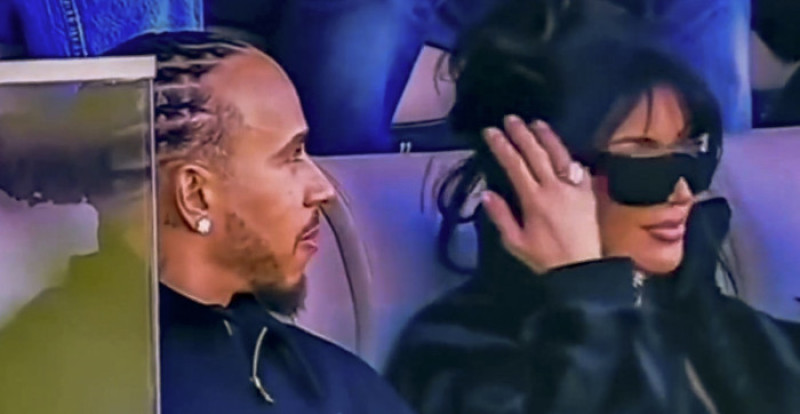 Într-un videoclip surprins în timpul meciului, vedeta de 45 de ani este văzută zâmbind larg în timp ce vorbește cu Hamilton, în vârstă de 41 de ani. Pentru această apariție, fondatoarea brandului Skims a ales o ținută complet neagră, accesorizată cu un colier impresionant cu diamante, și o coafură cu breton, care a atras imediat atenția.