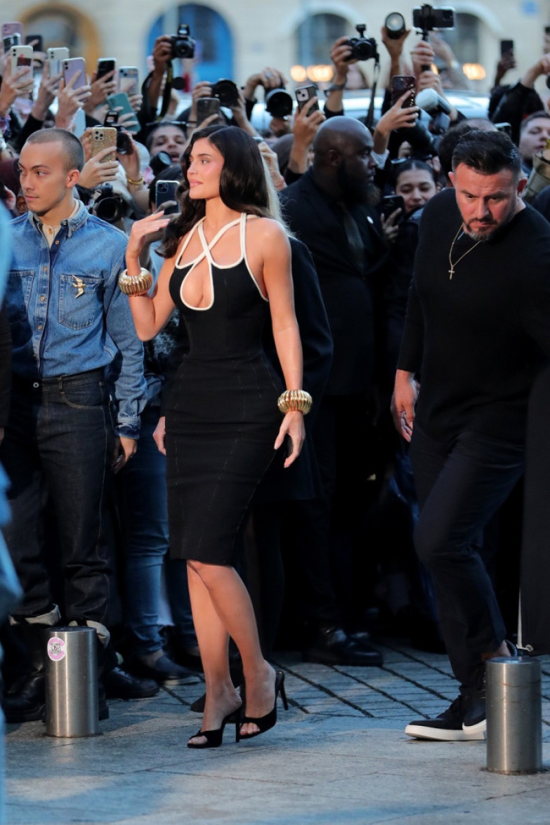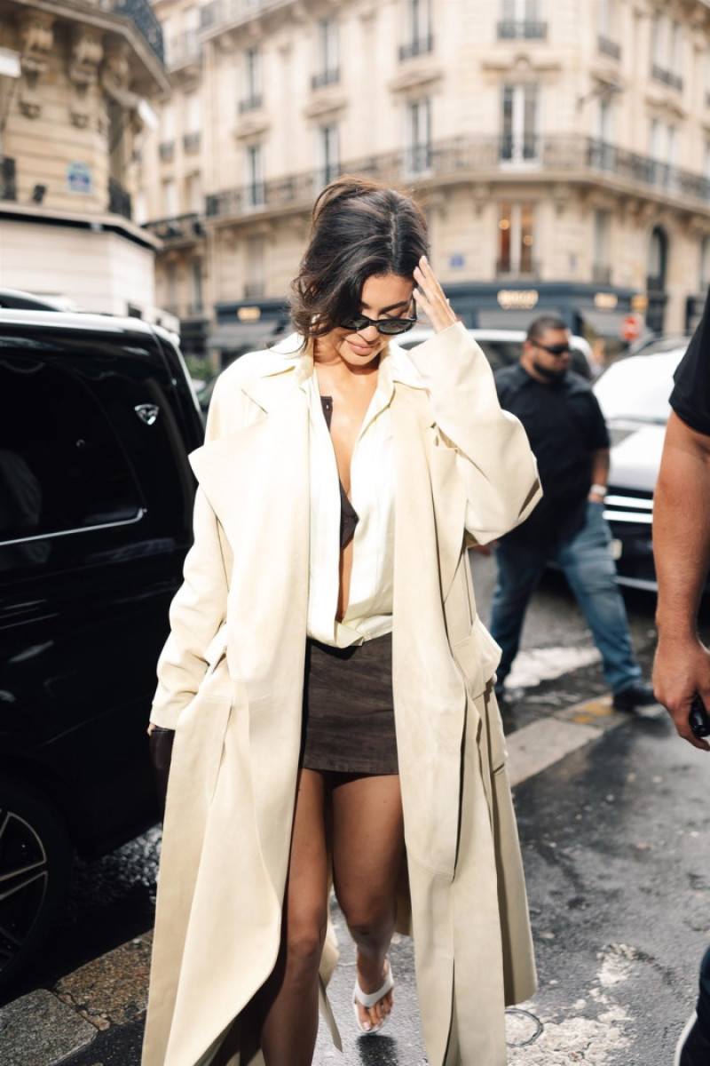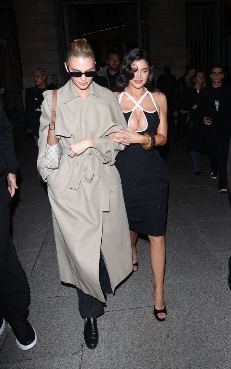 Pentru a-și desăvârși ținuta, Kylie a optat pentru bijuterii aurii, printre care și câteva brățări elegante, care i-au adăugat un plus de rafinament. Sora ei, Kendall, a ales un look mai discret, purtând un trenci lung și sobru. Cele două au părăsit spectacolul braț la braț.