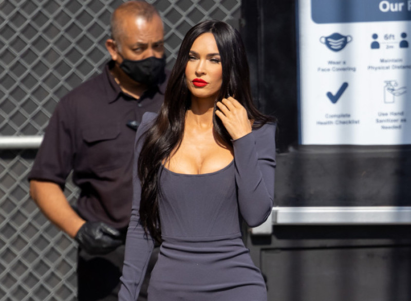 Megan Fox a fost invitată la Jimmy Kimmel Live!, unde a impresionat cu look-ul ei inspirat din moda anilor '50. Actrița din „Transformers” și-a pus în evidență silueta impecabilă într-o rochie gri închis, mulată și cu decolteu larg.