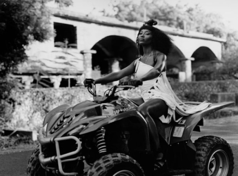 Alte fotografii din recentul pictorial, realizat în Kenya, o prezintă pe Naomi în diferite cadre idilice și articole vestimentare, care evidențiază nu doar frumusețea acesteia și originile ei jamaicane, cât și exoticul locului.