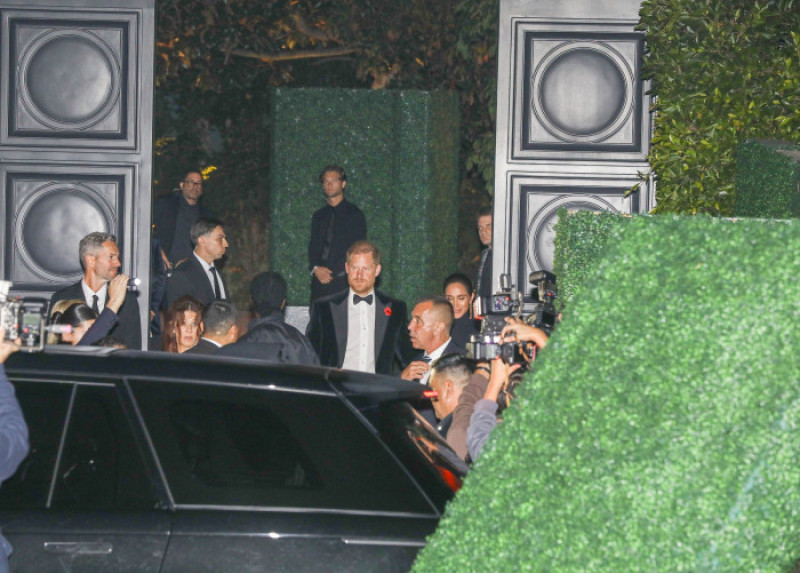 O apariție care a atras atenția a fost cea a prințului Harry și a lui Meghan Markle, care au sosit ținându-se de mână. Ducele de Sussex, în vârstă de 41 de ani, a purtat un smoking clasic cu o broșă în formă de mac, în onoarea Zilei Comemorării, în timp ce Meghan a impresionat printr-o ținută neagră elegantă din catifea.