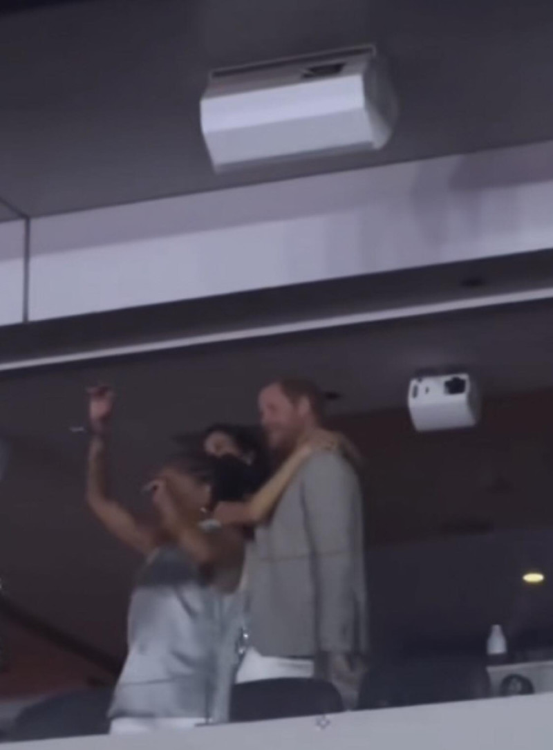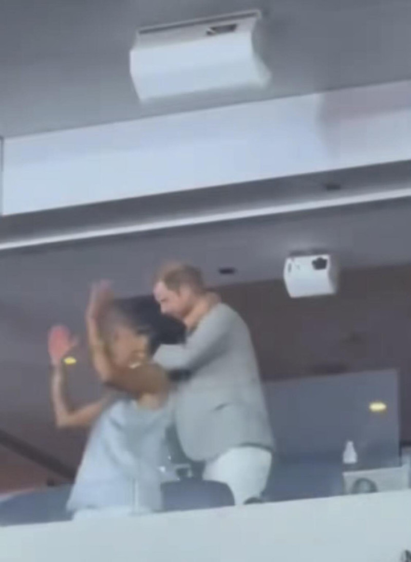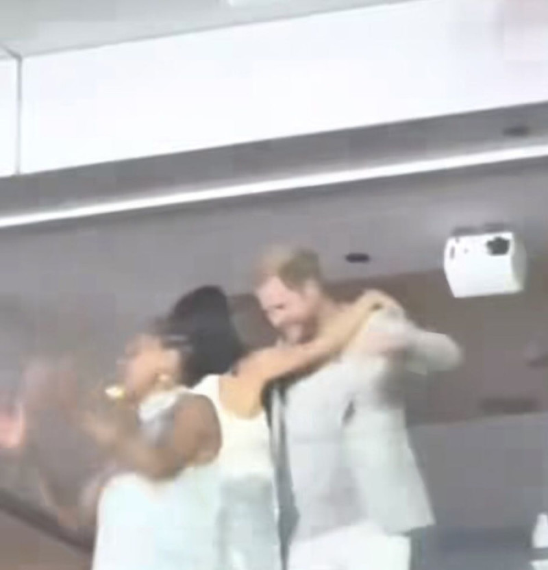 În videoclipurile publicate în mediul online, Harry, în vârstă de 38 de ani, este văzut cum o îmbrățișează pe soția lui, fosta actriță americană în vârstă de 41 de ani, în timp ce Beyoncé interpretează o melodie de dragoste. Prințul și-a ținut mâna în jurul taliei lui Meghan, iar ea și-a sprijinit capul pe umărului lui.