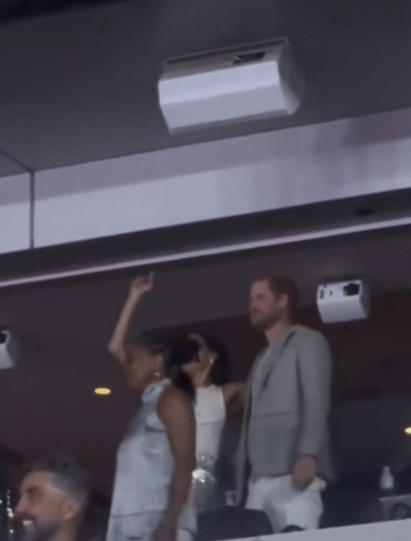 Meghan purta un top alb și o fustă argintie, în timp ce Harry a optat pentru un tricou gri și un sacou asortat, pe care l-a combinat cu albi. Cei doi s-au distrat împreună, au dansat și au cântat pe tot parcursul concertului.