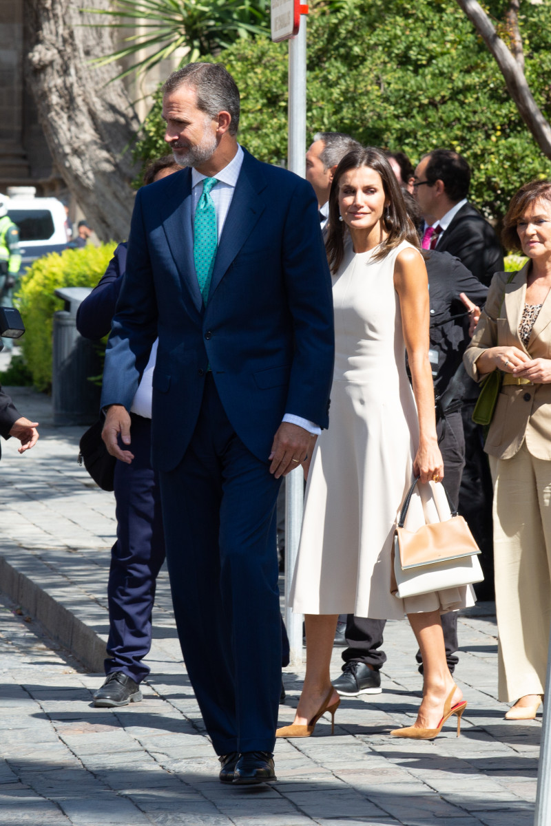 Pentru ca rochia nude purtata avea croiala simpla, Letizia a optat pentru un accesoriu-vedeta, care sa scoata tinuta din anonimat. Si a reusit!