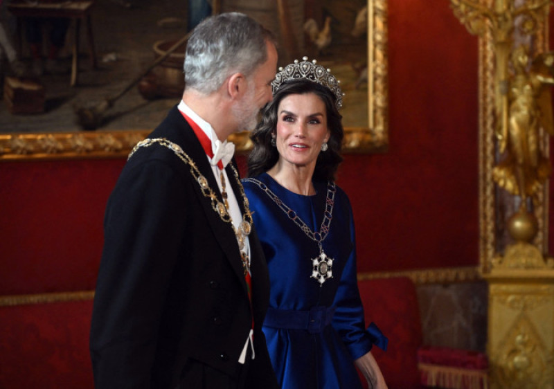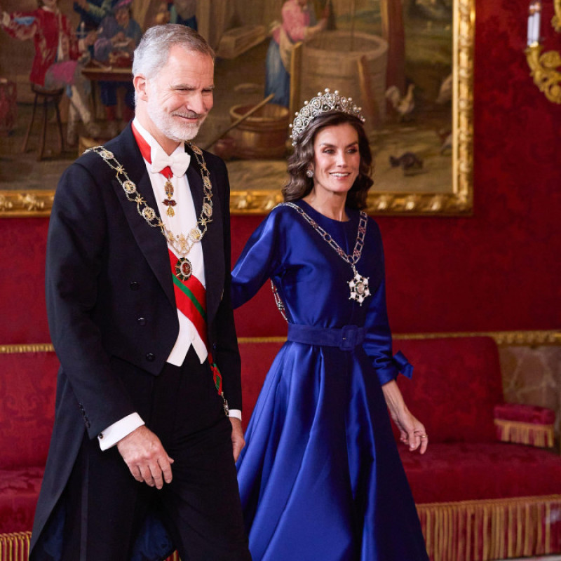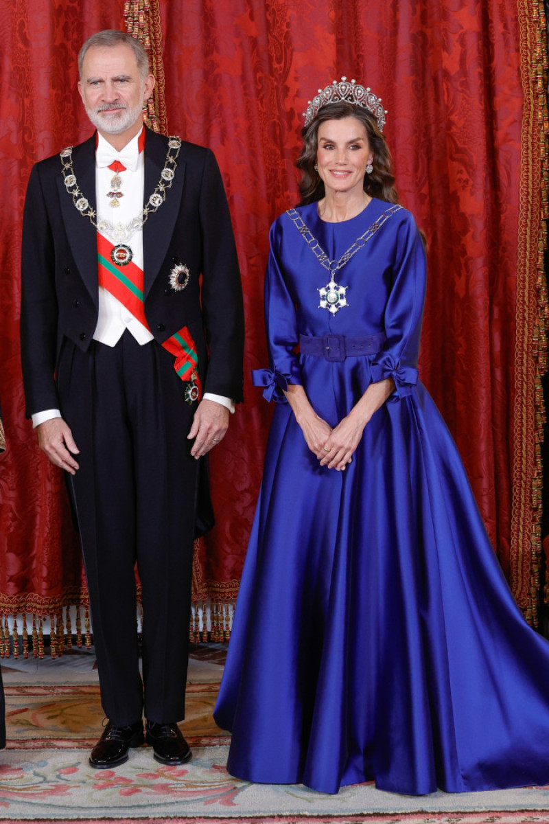 La cina de stat, Regele Felipe a purtat un frac negru cu guler înalt, completat de Ordinul Omanului și mai multe decorații simbolice. Împreună, cuplul regal a oferit o imagine a eleganței, demnității și rafinamentului care continuă să definească monarhia spaniolă contemporană.