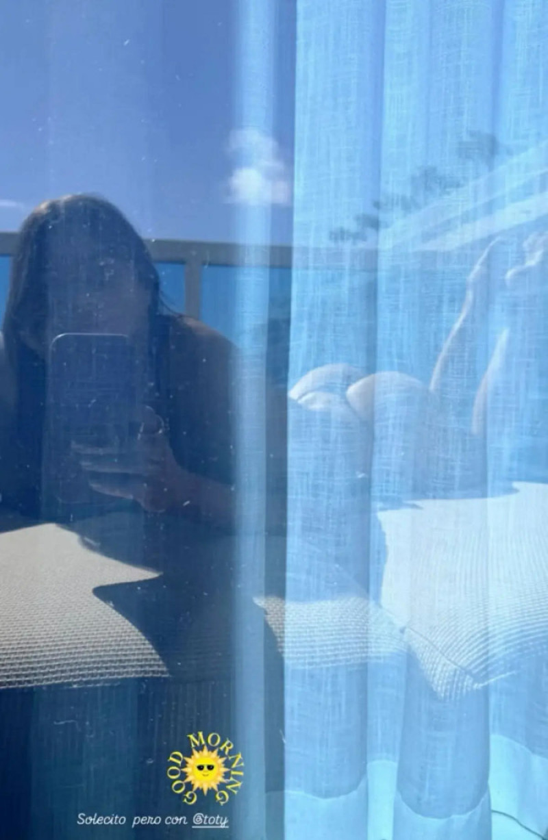 Vedeta a împărtășit cu urmăritorii săi câteva fotografii realizate la piscină sau pe terasa camerei ei de hotel, în care apare purtând doar un slip minuscul. Într-unul dintre selfie-uri, surprinsă în timp ce stătea întinsă pe un șezlong, actrița și-a etalat silueta tonifiată. O altă fotografie a arătat reflexia ei într-o fereastră, într-un cadru la fel de îndrăzneț. În rest, Vergara a ales să poarte doar o pereche de ochelari de soare închiși la culoare.