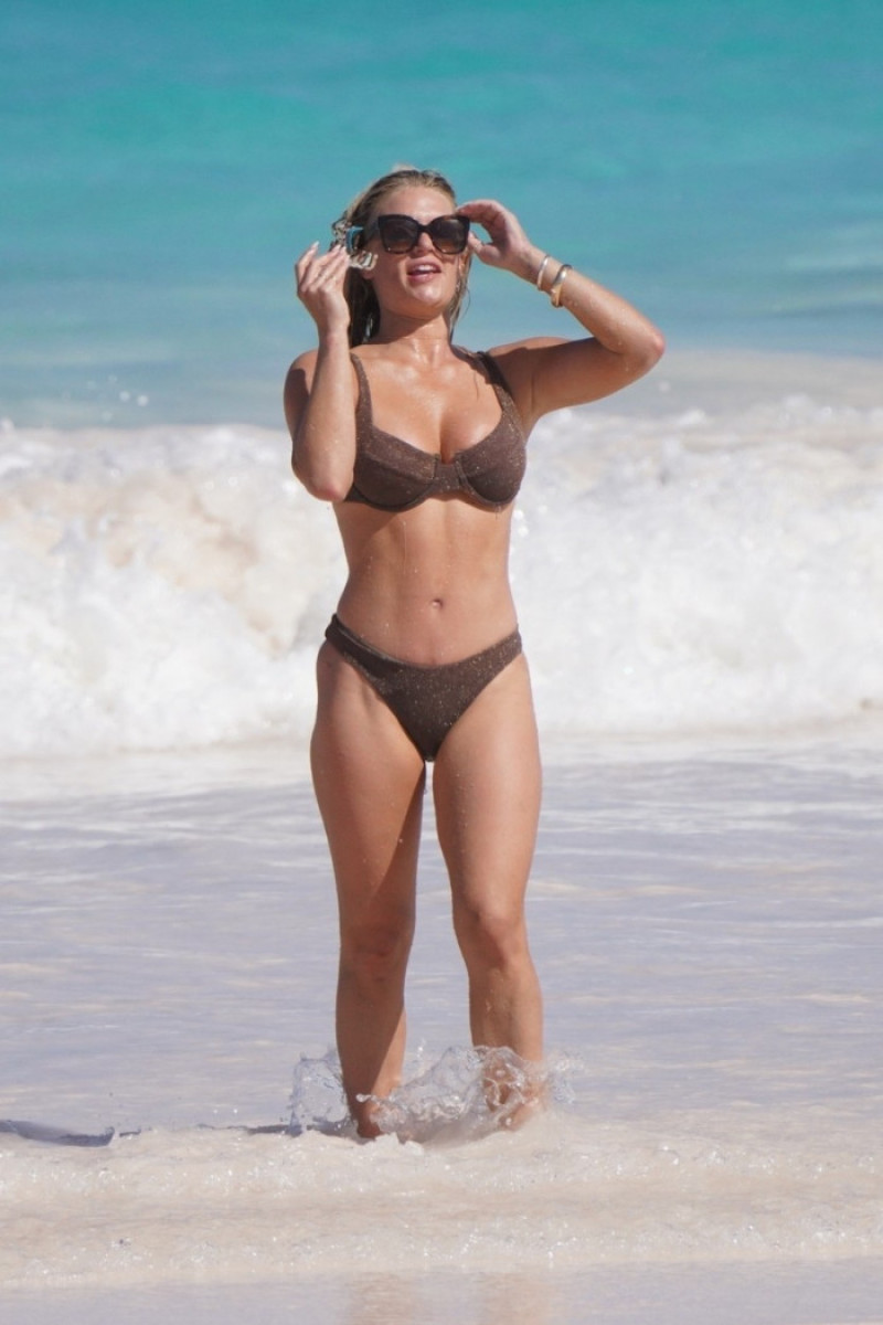 Blonda, în vârstă de 30 de ani, a fost surprinsă zilele acestea la plajă, în Bahamas, unde a făcut senzație. Îmbrăcată într-un costum de baie maro, Madison și-a etalat corpul tonifiat în timp ce s-a bucurat de valurile oceanului, iar paparazzii au avut grija să captureze fotografii cu aceasta din toate unghiurile.