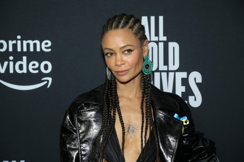 Thandiwe a impresionat într-o fustă cu impremiu floral, pe care erau cusute paiete și mărgele, fixată cu două bretele care îi acopereau decolteul. Starul din „Westworld” a asortat și o jachetă de piele lucioasă pe care a prins o fundă în culorile galben și albastru, pentru a-și arăta astfel sprijinul pentru Ucraina în timpul invaziei ruse.