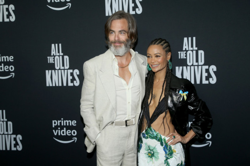 Alături de Thandie s-a aflat chipeșul ei coleg Chris Pine. Acesta a optat pentru un costum alb-gri.