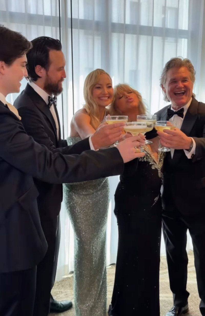 La rândul ei, Goldie Hawn (80 de ani) a optat pentru o apariție sofisticată într-o rochie neagră cu mănuși dramatice asortate. Ținuta a avut un decolteu adânc fals, realizat din material transparent decorat cu detalii argintii strălucitoare, care coborau în cascadă pe corset. Coafura ei, în aceeași nuanță blond-aurie ca a fiicei sale, a completat armonios imaginea elegantă a duo-ului.