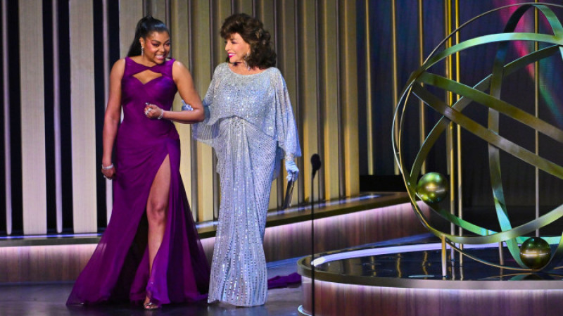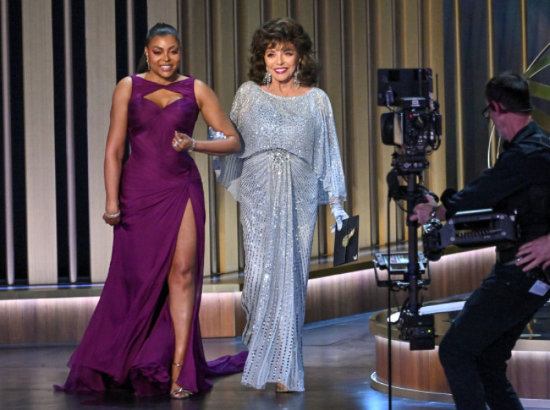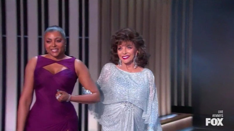 Joan Collins a arătat senzațional pe scena Emmy, pe care a urcat pentru a prezenta un premiu împreună cu actrița Taraji P. Henson.