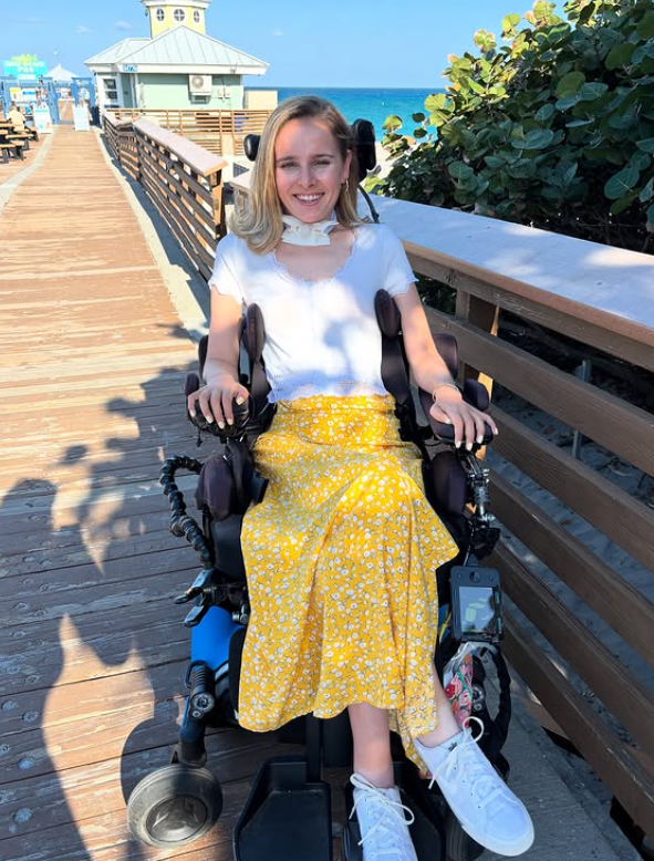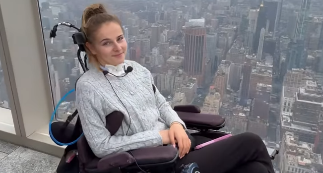 E paralizată de la gât în jos, dar își trăiește viața zâmbind. Pictează, lucrează și călătorește, în ciuda coșmarului care nu trece