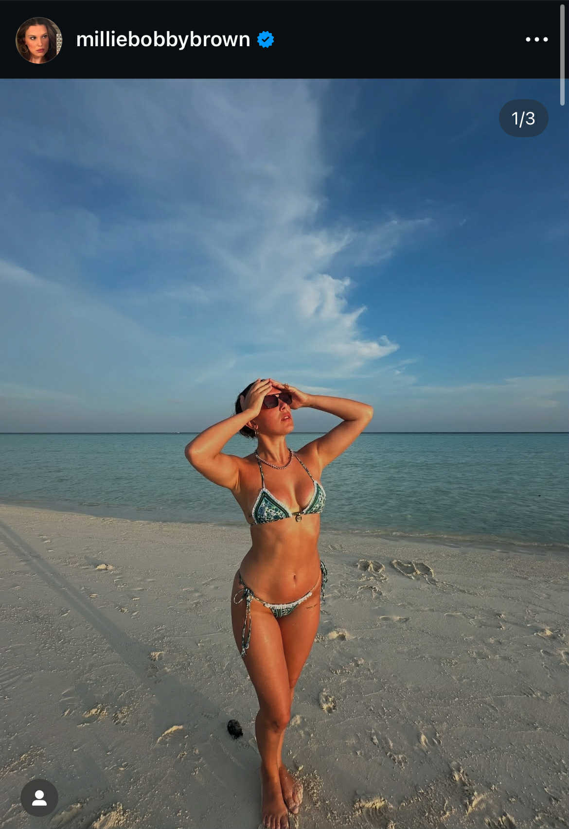 Millie Bobby Brown demonstrează din nou că are încredere deplină în ea și un stil fără cusur. Actrița în vârstă de 21 de ani a făcut valuri când a postat pe Instagram o serie de fotografii în care își etalează silueta tonifiată, îmbrăcată într-un costum de baie minuscul, cu un imprimeu albastru și verde.
