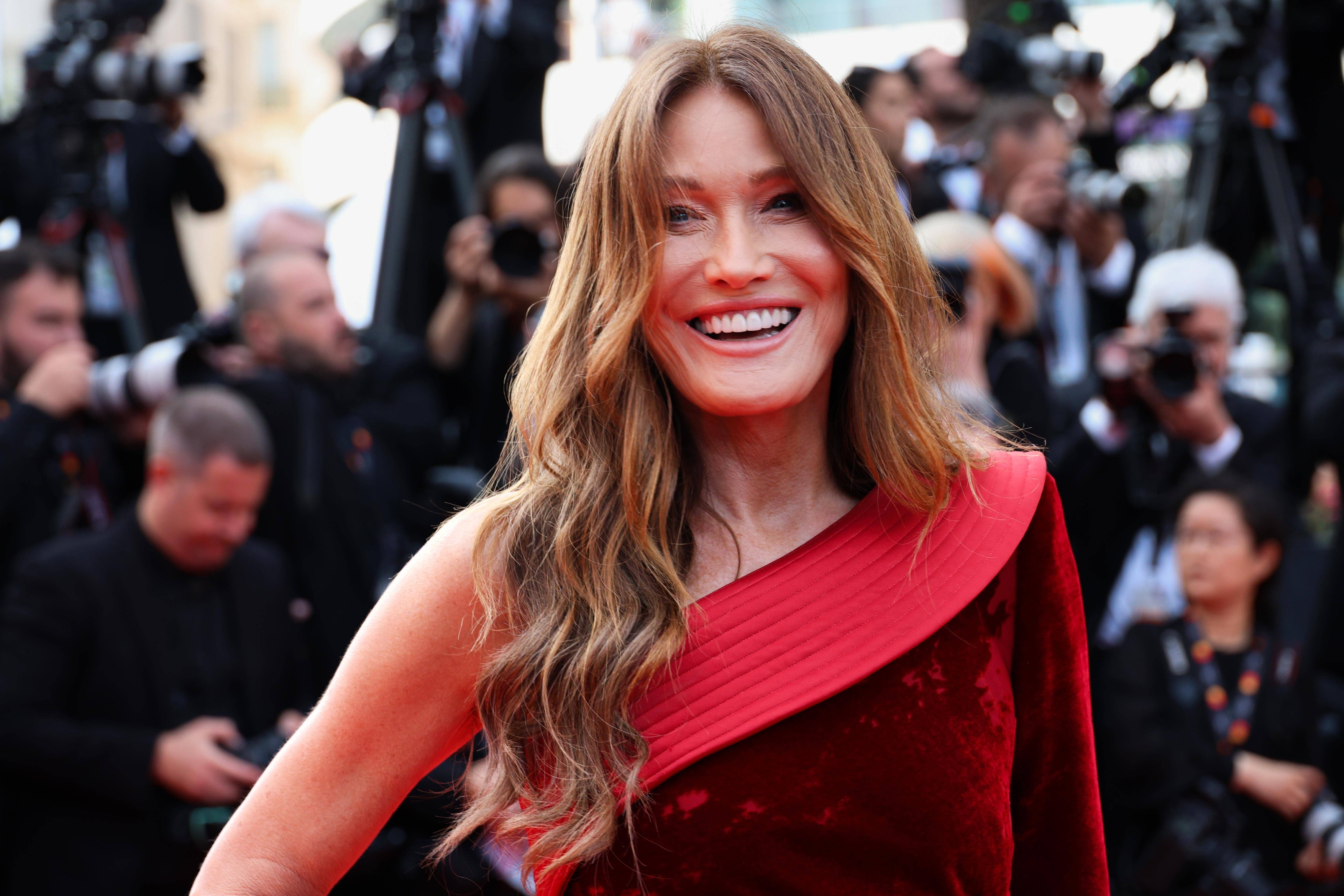 Carla Bruni, în vârstă de 57 de ani, a fost magnet de priviri într-o rochie roșie din catifea la Festivalul de Film de la Cannes.