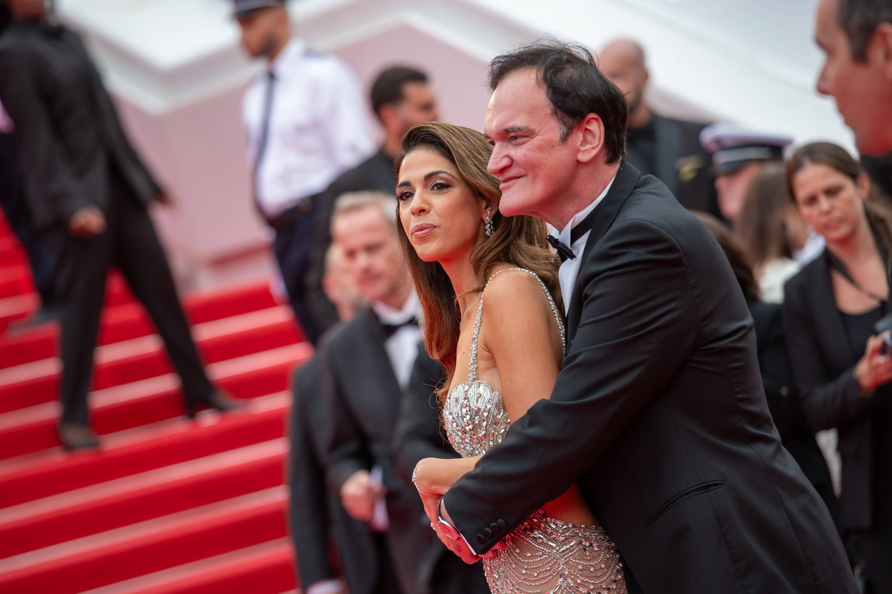 Quentin Tarantino și soția sa, drăgăstoși pe covorul roșu la Cannes, într-o ieșire publică rară pentru cuplu