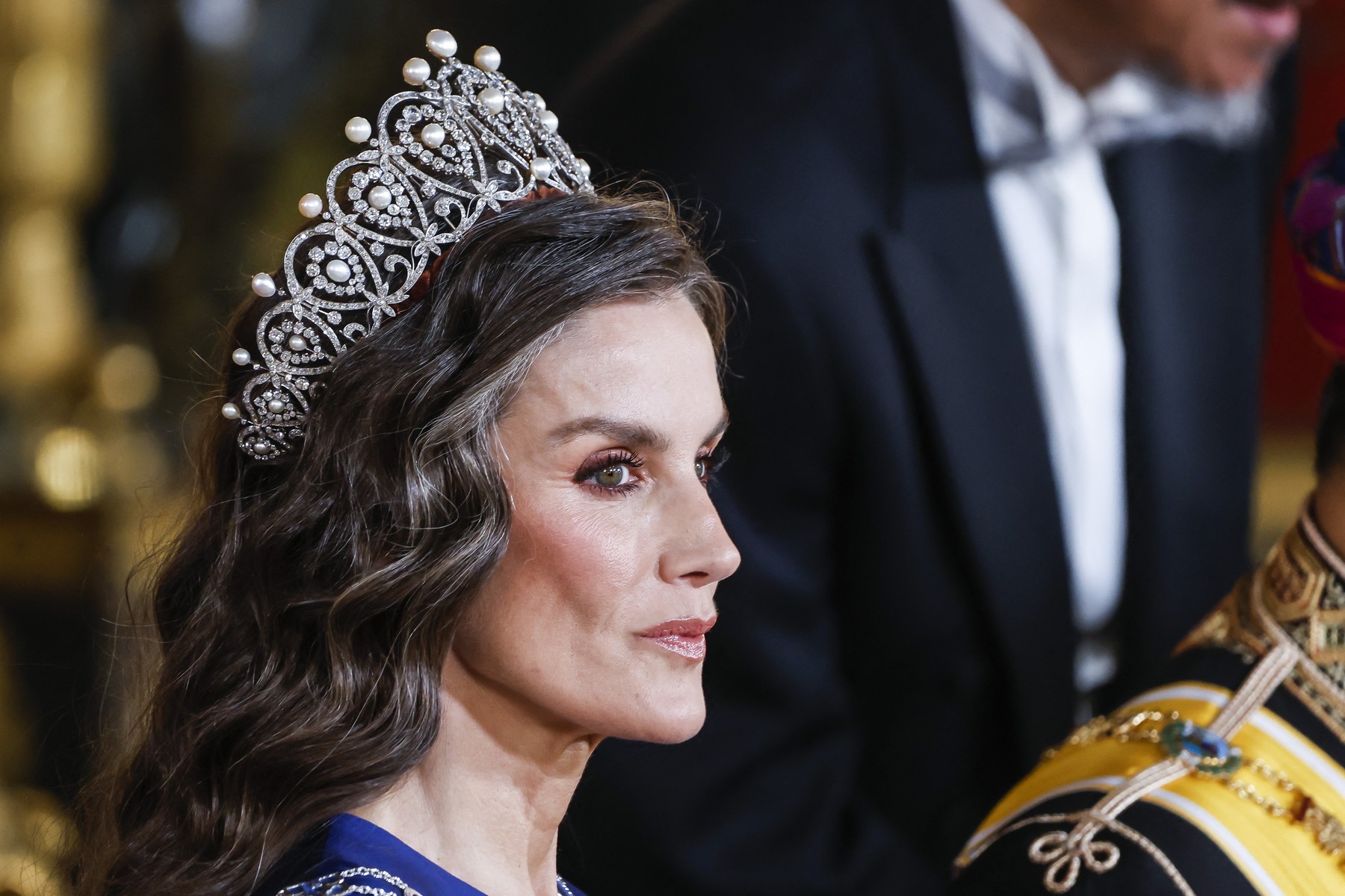Regina Letizia, superbă în albastru. Sigură pe ea, nu și-a ascuns părul grizonant, ba chiar l-a evidențiat cu o diademă prețioasă