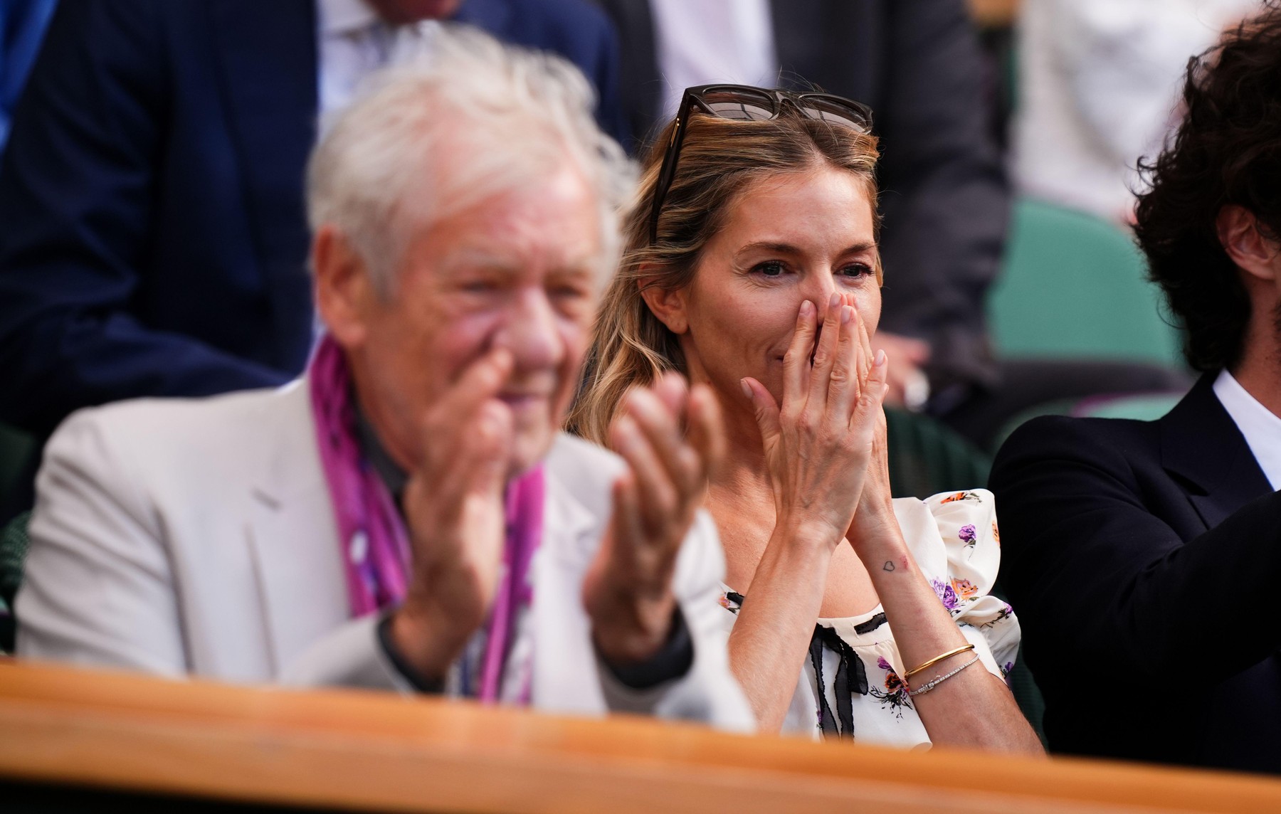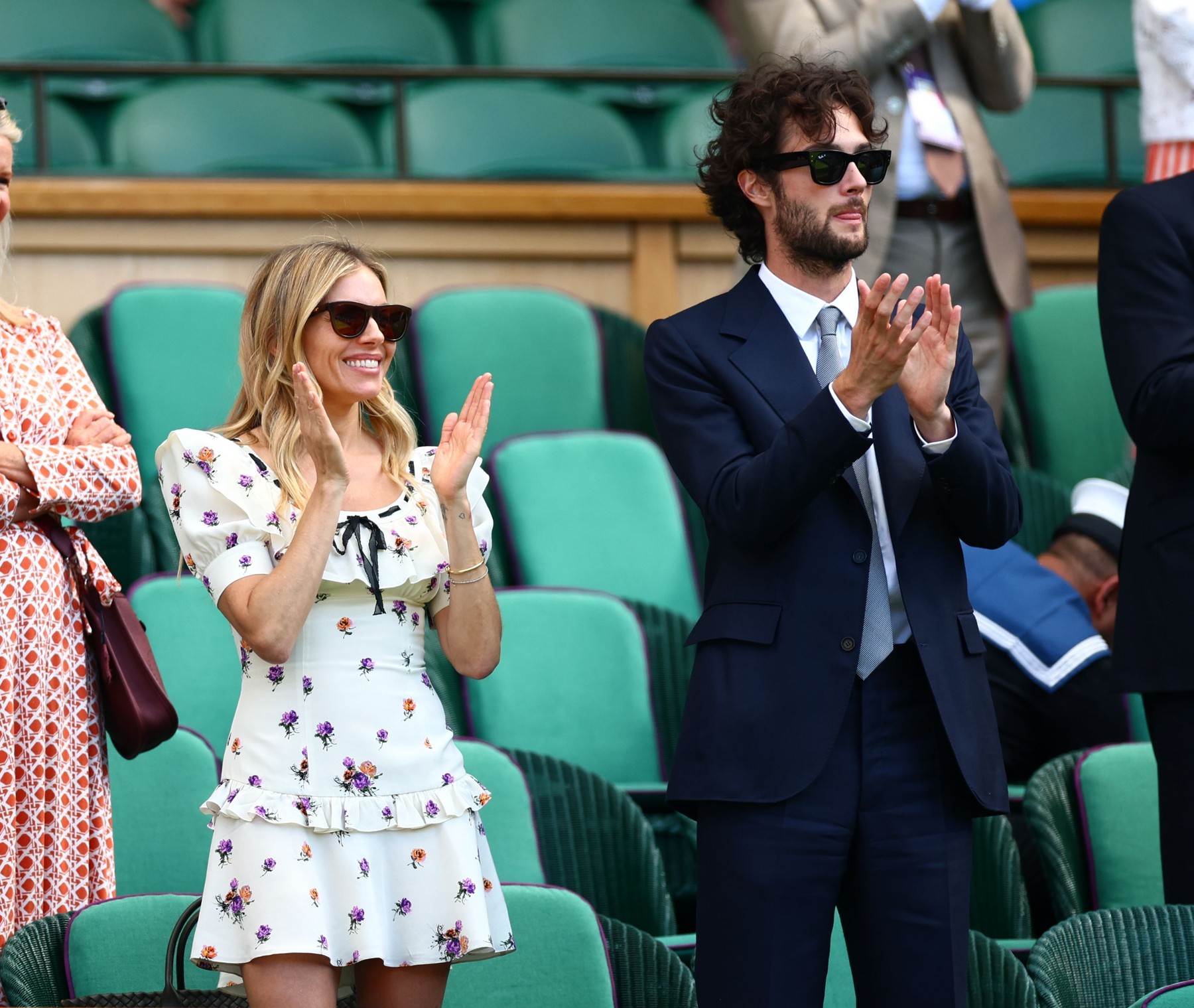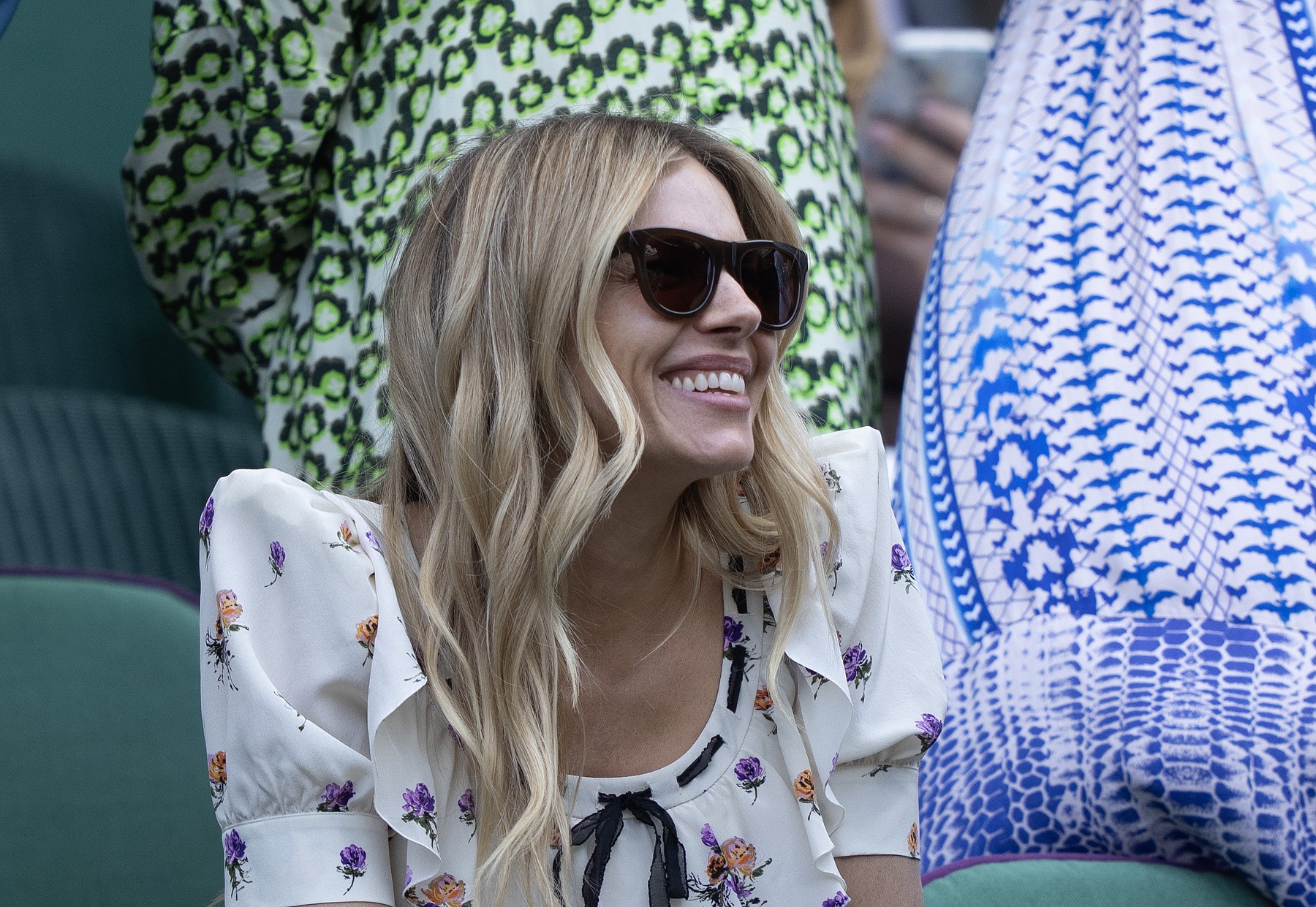 Sienna Miller a cucerit Wimbledonul într-o rochie mini cu imprimeu floral. Zâmbete și emoții pe terenul central, tonus ca la 20 de ani