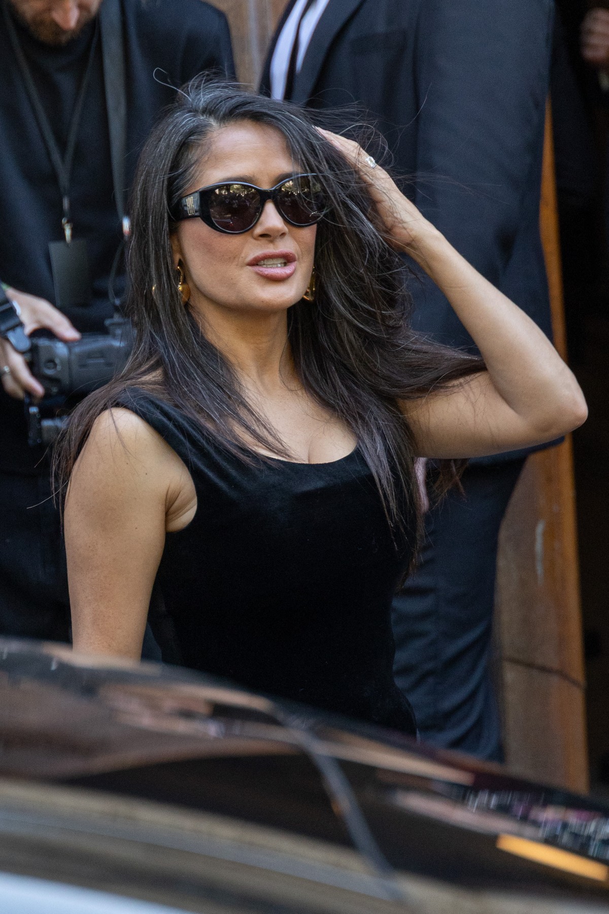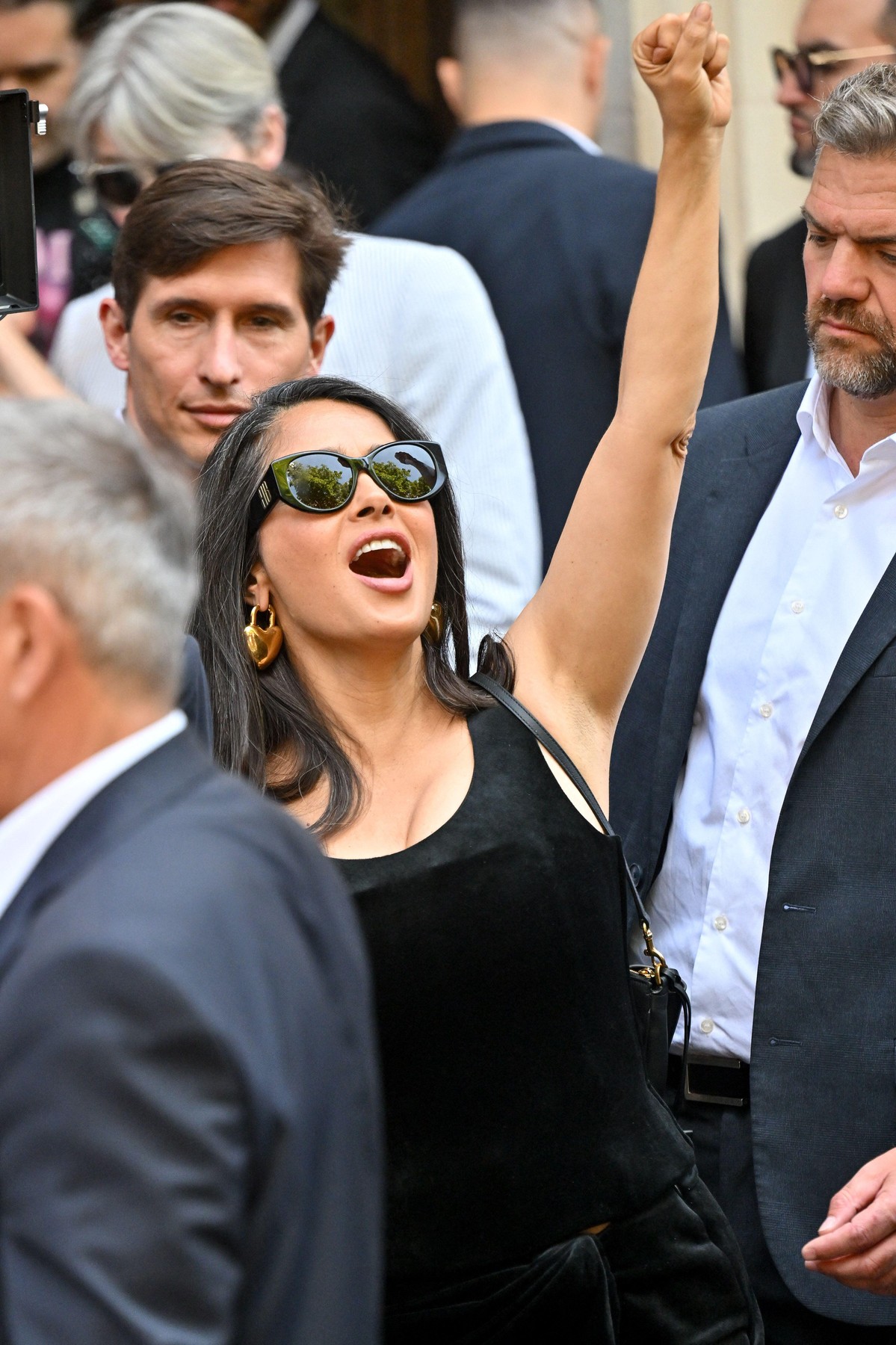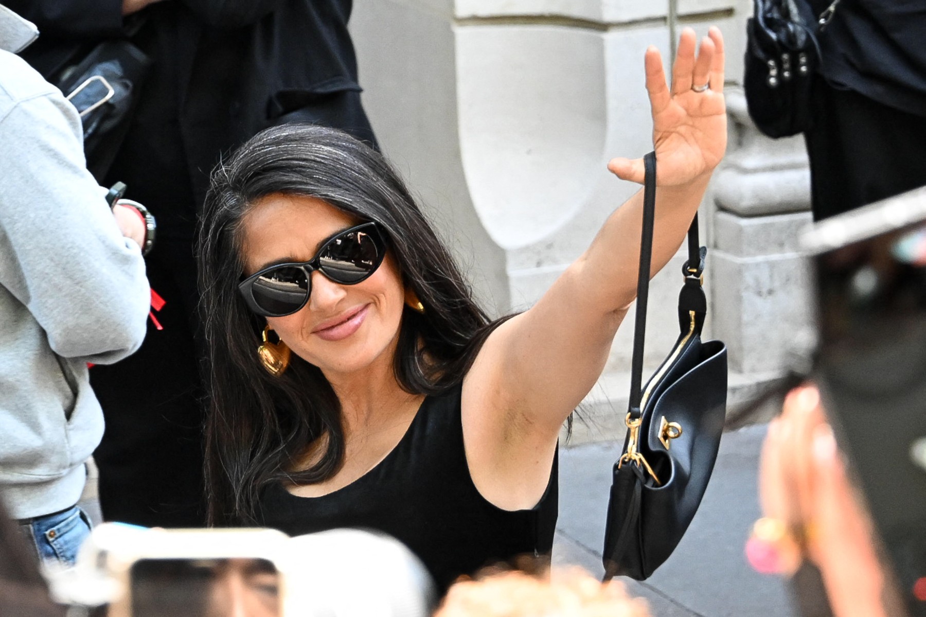 Fire albe? Salma Hayek îmbrățișează naturalețea. A făcut spectacol când a sosit la Săptămâna Modei de la Paris