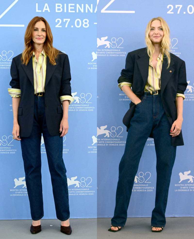 La doar câteva zile distanță, Amanda Seyfried a îmbrăcat la Festivalul de Film de la Veneția aceeași ținută ca cea purtată de actrița Julia Roberts, după ce și-a implorat stilista să-i împrumute respectiva vestimentație.